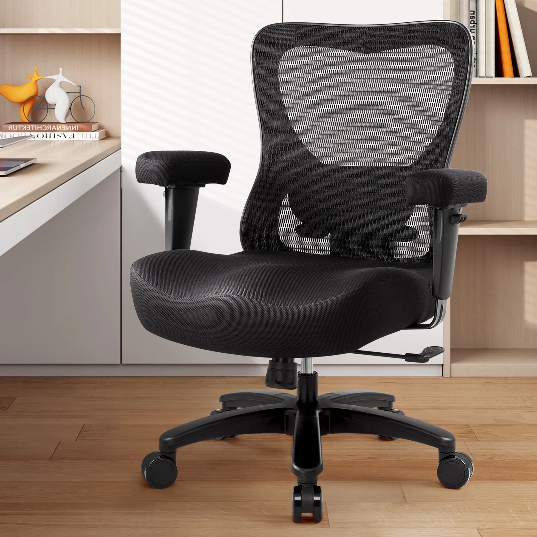 - Heavy Duty Office Chair: Designed specifically for larger individuals, our ergonomic office chair features an extra-wide seat cushion (22.44" x 22.05") and a thick, high-density foam padding that provides unparalleled comfort for long hours of sitting. The breathable mesh backrest ensures proper airflow, keeping you cool and comfortable throughout the day